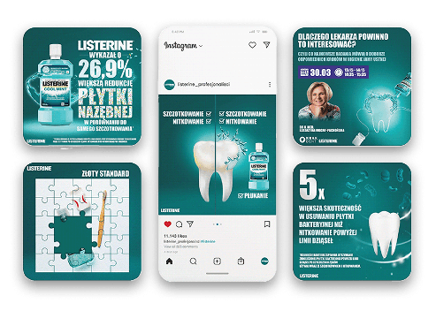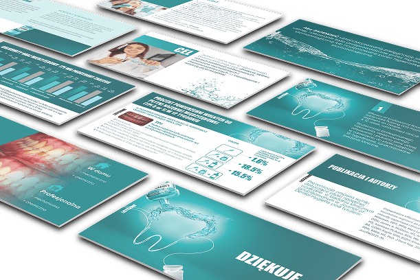 Dla globalnej marki Listerine zaprojektowaliśmy dedykowany zestaw materiałów wspierających działania edukacyjne i promocyjne na polskim rynku. Projekt obejmował budowę mini-landingu dla webinarów, opracowanie profesjonalnych prezentacji szkoleniowych oraz szeroką komunikację wizualną kampanii. Naszym nadrzędnym celem było stworzenie wysoce czytelnej, medyczno-edukacyjnej estetyki, która błyskawicznie buduje zaufanie, podkreśla ekspercki charakter marki i ułatwia przyswajanie specjalistycznych informacji.